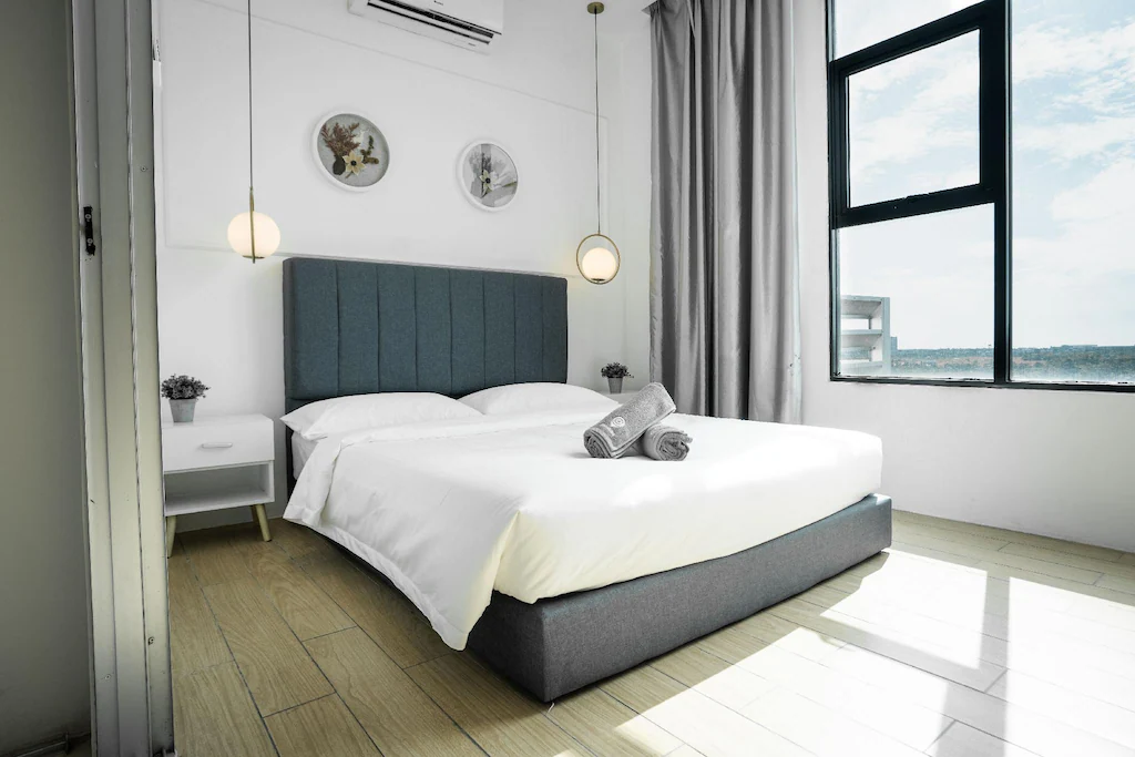 Bed setups: e.g., Queen bed + Twin beds in a 3-bedroom suite.